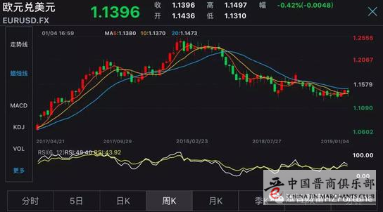 1月2日,欧元汇率大幅下挫1.05%,由接近1.15的高位跌至接近1.13的低位。3日即周四,在日元暴涨的带动下,欧元走强,重新回到1.14之上。周五,欧元汇率呈现横盘整理状况,尽管在美国12月大幅好于预期的非农就业数据公布后,曾短暂大幅走弱,但是很快又收回跌幅,收盘于1.1395美元/欧元,周涨幅为0.43%。
