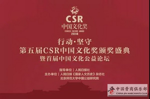2019年1月11日,由人民日报《国家人文历史》杂志社和北京师范大学中国公益研究院共同主办的第五届“CSR中国文化奖”颁奖盛典暨首届中国文化公益论坛在北京成功举办。