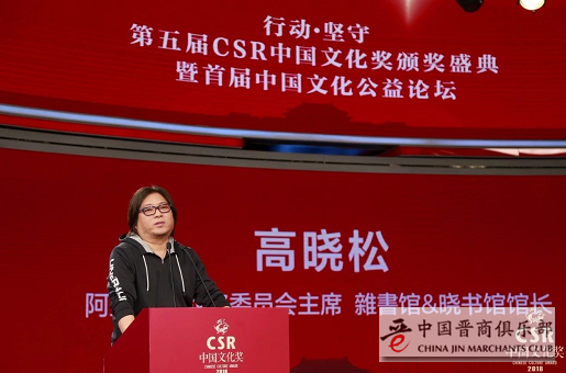 第五届“CSR中国文化奖”颁奖盛典现场还举办了首届中国文化公益论坛,长江证券创始人、石门坎教育公益基金会理事长陈浩武,可口可乐大中华区公共政策、可持续发展和融合发展总经理于春宏,阿里娱乐战略委员会主席、杂书馆&晓书馆馆长高晓松分别作主旨发言,对文化公益主题进行深度解读。