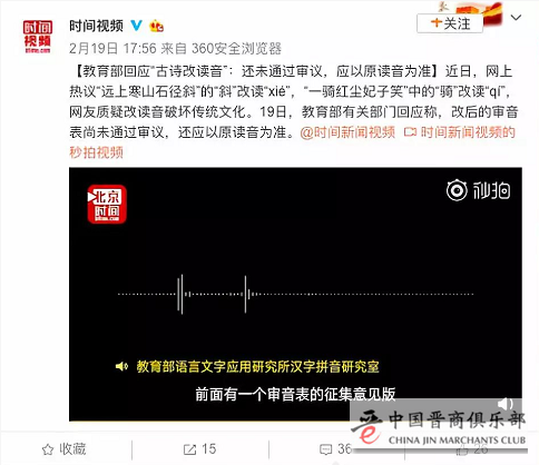 据@时间视频报道,19日,教育部有关部门回应称,改后的审音表尚未通过审议,还应以原读音为准。