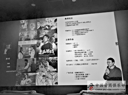 当天活动的主角解雨,33岁,山西交城人,青年导演,编剧,本科就读于太原师范学院,后在上海大学电影学院硕士研究生毕业。至今已经执导过短片《不二》《奶奶家》《演员》,以及网大《世子嫔的男人》(金莎)《陆家嘴金融风暴》(王矜霖)《追凶游戏》(那威、王矜霖)《金银游戏》(赵文瑄、陈逸恒)等。作品受邀参加2015夏威夷国际电影节、2015釜山国际电影节、2017平遥国际电影展展映。现场播放了他多部电影的片花以及短片《不二》的全片,本片曾入选釜山电影节亚洲学生短片单元。随后,解雨还为他的最新电影——县级晋剧团在文化体制改革背景下触及人性的作品《马路,天使》做了一场推介。