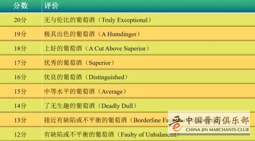在葡萄酒评分上,杰西斯·罗宾逊采用的是欧洲传统的20分制,最低分为12分,获得17分及以上的葡萄酒便可视为优秀酒款,具体评分梯度如下: