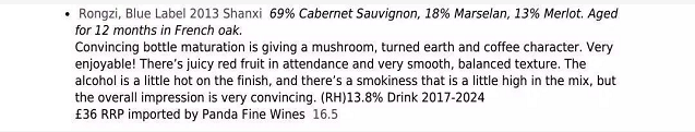 近日,世界著名酒评家,英国女王酒窖顾问,葡萄酒贸易行业之外第一位“葡萄酒大师”,葡萄酒王国“第一夫人”,《金融时报》(Financial Times)葡萄酒专栏作家——杰西斯·罗宾逊(Jacis Robinson MW)给戎子葡萄酒高度评价。