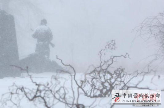 资料图:当地时间2018年1月4日,暴雪中纽约法拉盛公园中的雕塑。当日,纽约降下2018年首场暴雪。受一波被称为“炸弹气旋”的风暴影响,美国东北部地区当天普遍遭受暴雪袭扰,3000多个航班因此取消。 中新社记者 廖攀 摄