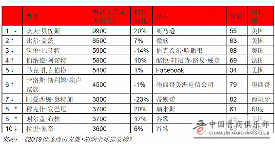 亚马逊的杰夫•贝佐斯以9900亿人民币蝉联世界首富。马云身家2600亿元成为全球华人首富,上升4位到第22位,马化腾则以2550亿元紧随其后,位列华人第二,全球第24位。