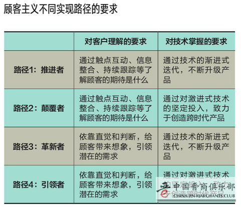 这些问题的答案虽然不完全互斥,但企业的一般倾向还是可以在很大程度上决定实现顾客主义战略的不同路径。