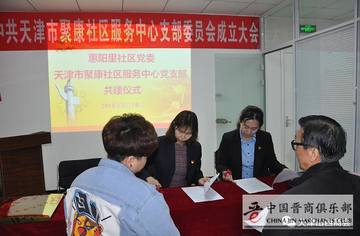 越秀路街党工委领导出席了会议。会上,举行了惠阳里社区党委与聚康社区服务中心党支部共建仪式,并签署了共建协议。