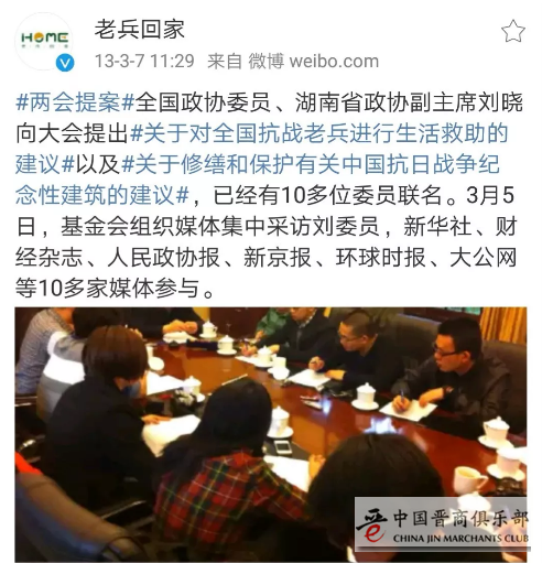 为配合两会提案,在两会期间,我组织了一个小型的新闻见面会,约了10多位媒体旧识,集体采访刘晓副主席,呼吁优待国军抗战老兵。刘晓副主席的父亲叫刘公武,曾任黄埔军校武冈分校少将政治部主任、湖南省政府秘书长。这份渊源,让他成为我们坚定的支持者。