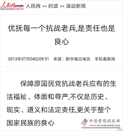 新华社也发出通稿,“致敬光荣岁月——大陆官民携手抚慰原国民党抗战老兵”。