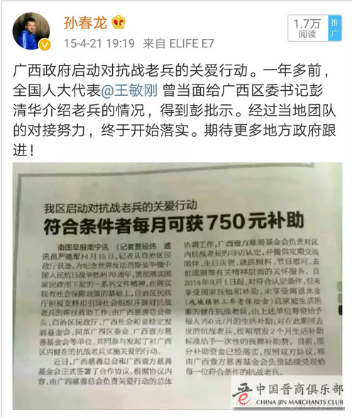 认识王先生是在2013年两会期间。那时,我供职的深圳市龙越慈善基金会刚刚成立一年多,每年筹款仅仅两三百万,相对于需要照顾的人数众多且年迈贫困的国军抗战老兵来说,杯水车薪。据当时预估,全国幸存抗战老兵在3万名以上,因为历史原因而造成的孤寡比例约5%。而志愿者寻访到的老兵仅有千名,不敢去找,根本原因是没钱。