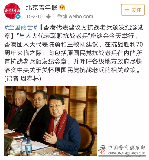 第二天上午10时,在北京饭店,我约了20多位媒体记者集体采访王敏刚先生,王先生邀请了港区人大代表陈勇一起参加。王先生说,抗战属于全民族抗战,不应区分国共,应一视同仁。