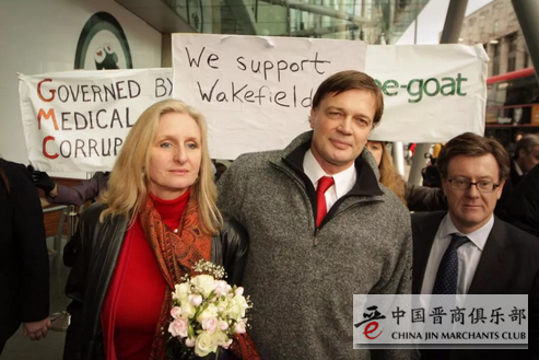 (图为2010年1月28日接受采访的维克菲尔德和其妻子,就在其论文被撤稿的“前夜”,仍有大量“铁粉”的他还没有死心)