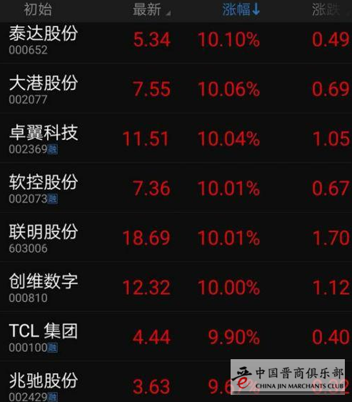 今日早盘,记者参考中信证券研报梳理出的20余家科创板“影子股”大幅高开,截至发稿,联明股份(603006.SH)、卓翼科技(002369.SZ)、泰达股份(000652.SZ)、大港股份(002077.SZ)、软控股份(002073.SZ)、创维数字(000810.SZ)6只个股涨停,TCL集团(000100.SZ)、兆驰股份(002429.SZ)涨超9%。