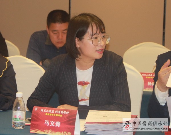 中国晋商俱乐部常务副秘书长马文青现场发言,向与会代表汇报了中国晋商俱乐部的近期相关工作,尤其是首届晋商联合国论坛的事情。
