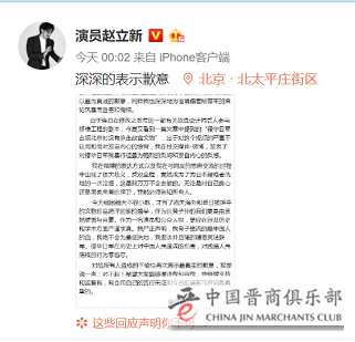 “赵立新道歉”随即登上微博热搜榜,引发新一轮热议。