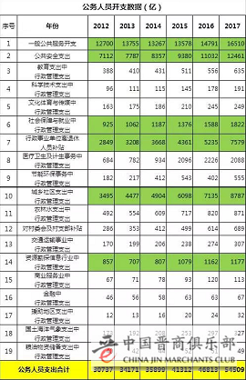 除此之外,我国公务员支出费用从2012年公务人员合计3.07万亿,到2017年已经高达5.45万亿,增长幅度高达77.5%,而从2012年到2017年,我国的经济增长幅度才52.4%,也就是说,国家在公务员上的开支远远超过经济增长水平的,花钱花多了,自然就得节流了。