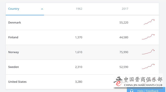 从数据看,1962年的瑞典还是比较富裕的,同年代的芬兰和挪威就算不得富国了。当然,瑞典比另外两个国家是有原因的,早在1870年,该国就开始了市场经济改革,此后的数十年发展相当迅猛。