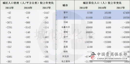 其中最突出的两个城市是山西晋中与浙江温州,这两个城市常住人口2014-2017连年上涨,但人口密度却在连年降低。值得一提的是,山西省是唯一一个人口密度三年内持续降低的省份,同时其城区常住人口是连年增长。可见,这三年中,山西省整体土地的城镇化恐怕要快于人的城镇化。
