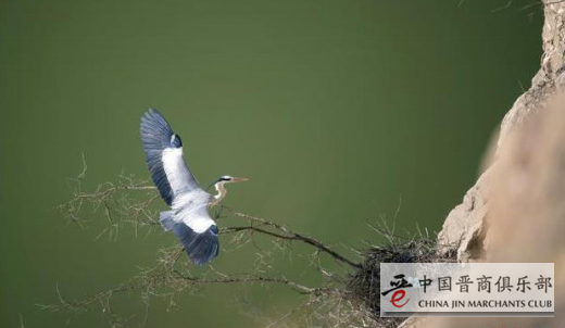在平陆县黄河湿地好汉坡段,三三两两的苍鹭有的在空中翱翔,有的潜水觅食,还有些苍鹭把鸟巢搭在悬崖边的石台上,开始孵卵。