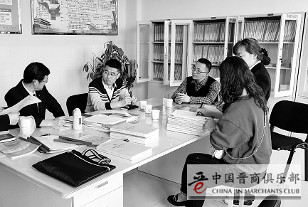 王红轲(左三)在万荣县南张乡卫生院进行健康扶贫季度督导。 王丽霞摄