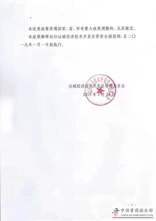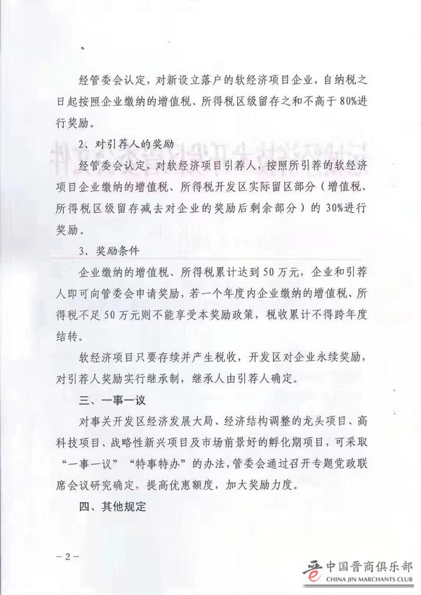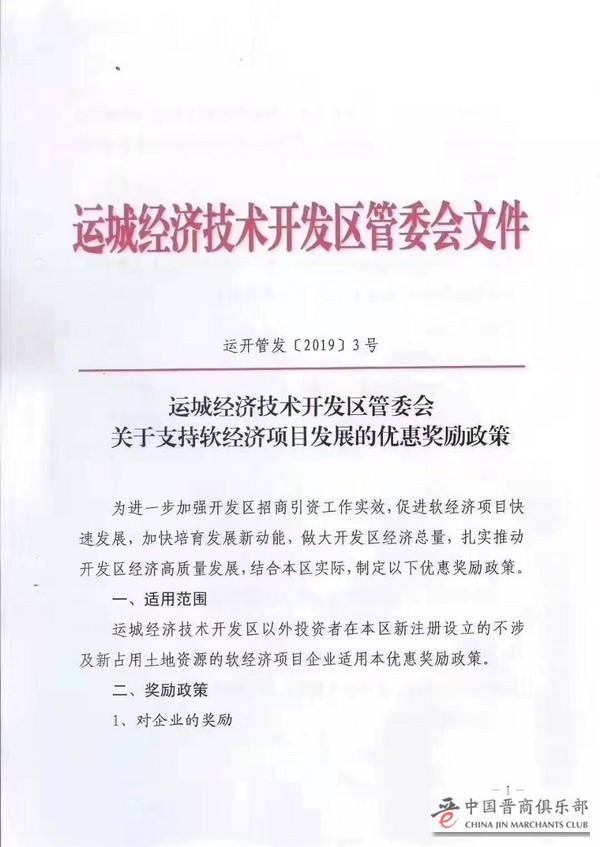 中国晋商俱乐部秘书处简讯,山西省运城市经济技术开发区新进出台新的招商政策,大力度吸引和奖励“软经济”项目。