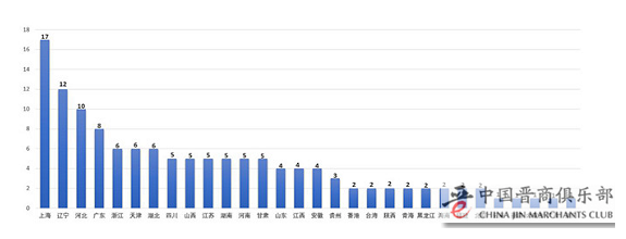 第二批工业遗产名录中遗产地域分布统计图,部分工业遗产跨多个区域