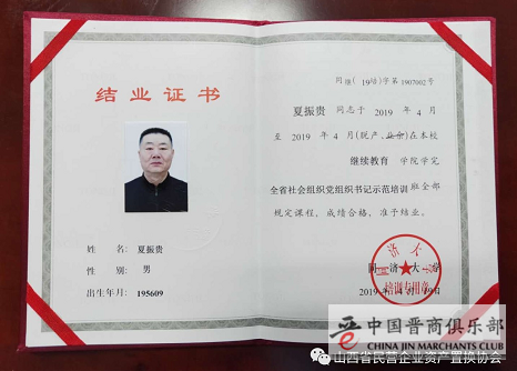 2019年4月16日—19日,由中共山西省委组织部和省民政厅联合举办的全省社会组织党组织书记示范培训班在上海同济大学开班,全省各级各部门、各系统、各行业商协会等社会组织党组织书记和党委负责人60余人集中同济大学统一培训,山西省民营企业资产置换协会(中国晋商俱乐部联合发起机构)党委书记夏振贵参加了培训。