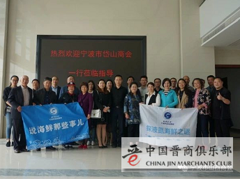 2019年4月20日,应宁波市岱山商会邀请,宁波市山西商会(中国晋商俱乐部联合发起机构)与宁波市河北、山东、温州、杭州、台州、电线电缆的秘书长,连同岱山商会贸易组的30余名会员,一起来到了享誉“中国远洋渔都”之称的舟山群岛新区定海区干览镇西码头的浙江大洋兴和食品有限公司,参观考察该公司的水产品精深加工及绿色安全的海洋食品。