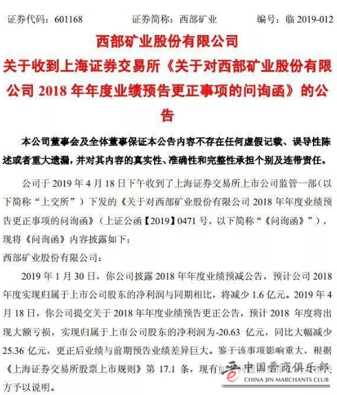 上交所就发文要求西部矿业认真自查业绩预告差异巨大的原因,并说明公司在财务管理及信息披露事务管理上是否存在重大缺陷;是否一次性计提进行财务大洗澡。