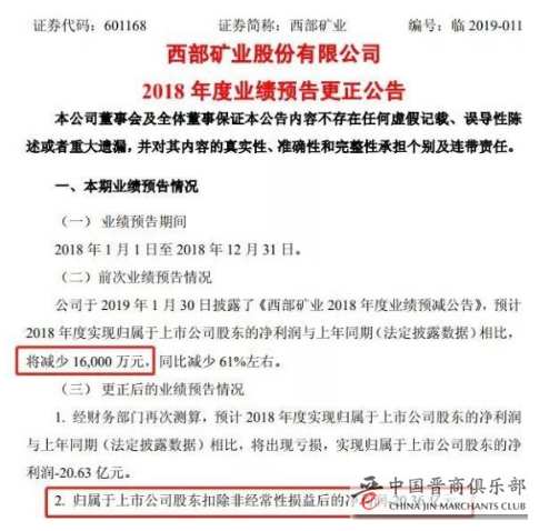 根据信披规则,业绩爆雷通常会在1月底就预告,西部矿业也确实公告了,只是说净利润下降1.6亿元。去年为2.61亿元,那么今年也还有1亿元左右。