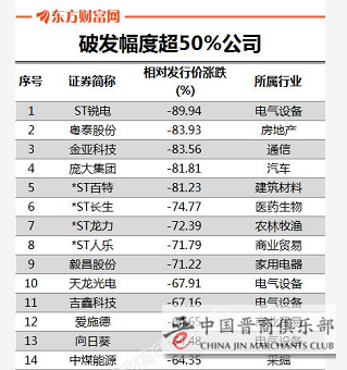 28公司破发幅度超50%
