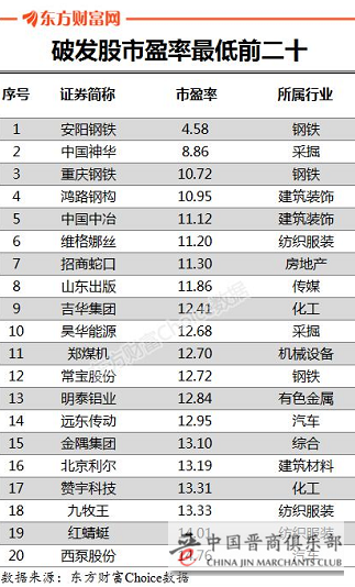 在市盈率为正的非ST类公司中,安阳钢铁市盈率最低,只有4.58倍。中国神华紧随其后,市盈率为8.86倍。