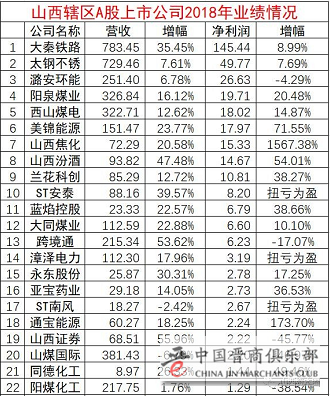截至4月30日,山西现有37家A股上市公司2018年年度业绩报告悉数披露。从整体上来,相较于2017年,虽然山西辖区大部分上市公司增速有所放缓,但基本保持稳中有进,合计营收和盈利规模双双再创近年新高。