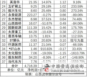 不再赘言,以下山西37家A股上市公司业绩排名(以净利润为排名参考):