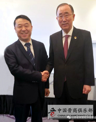 联合国前秘书长潘基文和韩国政要会见山西省民营经济促进会和上海市山西商会代表团,特邀山西省投资促进局局长艾凌宇(前排左二)参加会见