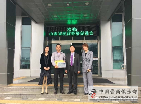 山西省民营经济促进会副会长秦满虎(右二)和上海市山西商会高洁(左一)向大邱市政府工商所赠送手工制品礼物