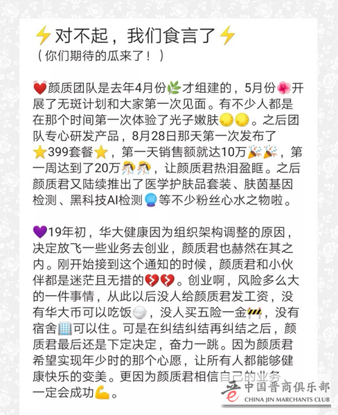 2019年初,华大健康因组织架构调整,决定将一些业务剥离出去,让其单独创业,包括颜质。在高层会议上,还多次提到拟将相关仪器转让给颜质团队,以助其业务的延续。