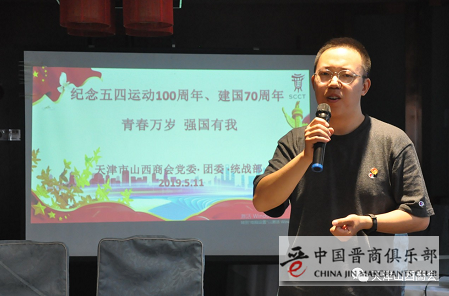 5月11日,天津山西商会(中国晋商俱乐部联合发起机构)团委在渝湘江南举行纪念“五四”运动100周年活动,同时组织观看助阵了商会当天参与的足球友谊联赛。商会党委副书记、统战部部长张爱梅,商会团委书记刘勇出席会议并讲话。