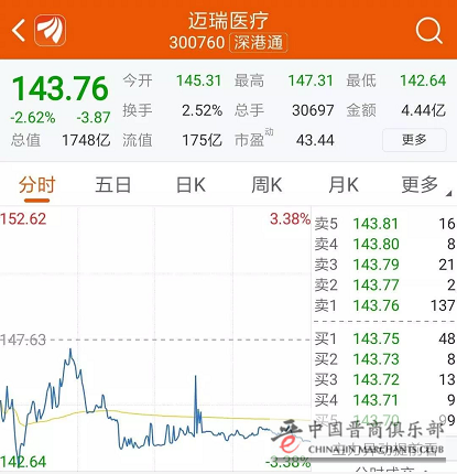 不管两者是否有直接关系,反正5月14日当天,迈瑞医疗明显低开,全天维持弱势震荡,至收盘下跌2.62%,市值缩水47亿元。
