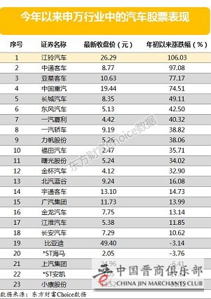 个股方面,上周申万行业的23只汽车股票中,有20只股票走跌。不过得益于年初的降价潮,大部分汽车股今年以来仍录得较大涨幅。