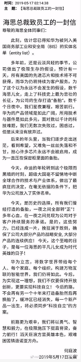 针对美国方面对华为的打压,华为旗下的芯片公司海思半导体总裁何庭波发布了一封致员工的内部信,宣布面对至暗时刻,华为海思将启用“备胎”计划——多年准备的芯片一夜之间全部转“正”!
