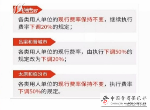 从全省情况来看,自今年5月起,在保持工伤保险八类行业费率总体稳定的基础上,朔州市各类用人单位的现行费率保持不变,继续执行费率下调20%的规定;吕梁市、晋城市两个统筹地区各类用人单位的现行费率由执行下调50%的规定改为下调20%;太原市、临汾市两个统筹地区各类用人单位的现行费率保持不变,执行费率下调50%的规定。