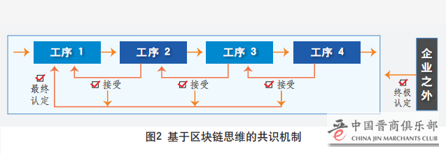 而基于区块链思维:放弃对每道工序的考核,工序1的任务完成之后,会转化成工序2的任务输入,如果工序1的输出已经被后面的工序2、3甚至4都接受了,是不是就可以认定工序1的合约执行完成?同理递推,工序2、3、4也是这样。