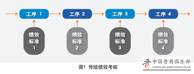 ★假设有一条流水线,流水线上有4道工序,现行的考核方式是针对1、2、3、4分别提出一套绩效标准,对每道工序进行单独考核(如图1所示)。