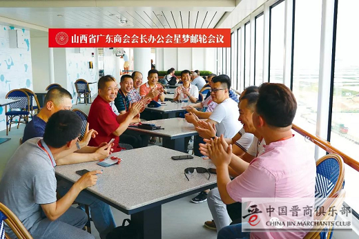 当日,考察团一行登上开往香港的星梦邮轮。在邮轮上,召开了由会长曾建新主持的会长办公会,考察团全体参加了会议。曾会长在会上首先对这次考察学习活动进行了肯定,表示要把广东先进的经营理念和开放包容带回山西,作为粤商要在山西开创出具有粤商特色的商会文化,面对日益变化的经济形势,商会同仁要团结在一起抱团发展,以他人之长补自己之短。在下半年的工作中,围绕新中国建立70周年展开一系列的群众文化活动,充分调动商会同仁的积极性,鼓励大家参与,为国庆献礼。同时,会议原则上通过了“八一”慰问解放军活动方案和纪念新中国成立70周年系列活动实施方案。