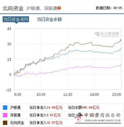 6月5日北向资金净流入32.67亿元,为6月开局以来连续第三个交易日净流入!