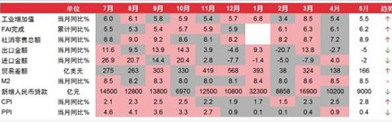 资料来源:中信证券研究部注:5月宏观经济数据为中信证券研究部宏观组预测,红色底色表示数据公布的时候高于市场一致预期,黑色底色表示低于一致预期