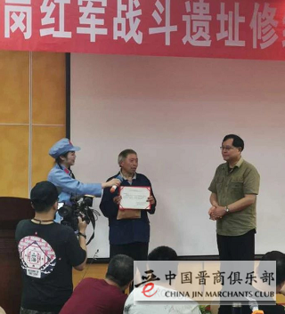 四川省山西商会副会长、花水湾第一村有限公司董事长李竹燕代表老战士向两代看护红军烈士墓的邱大爷捐款5万元,以回报他们父子84年来对红军烈士墓的默默守护。