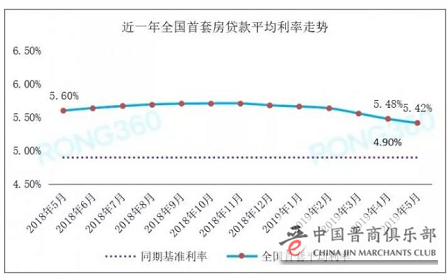2019年5月,全国首套房贷款平均利率为5.42%,较上月下降6BP,首套平均利率连降半年,目前已经降至2018年以来最低水平。