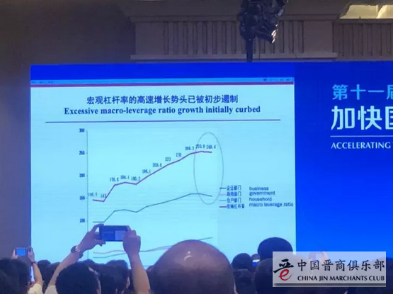 这条线(蓝线)是企业部门的杠杆率,我们看到在稳步地下降。特别是处置一些“僵尸企业”以后,形势正在好转。